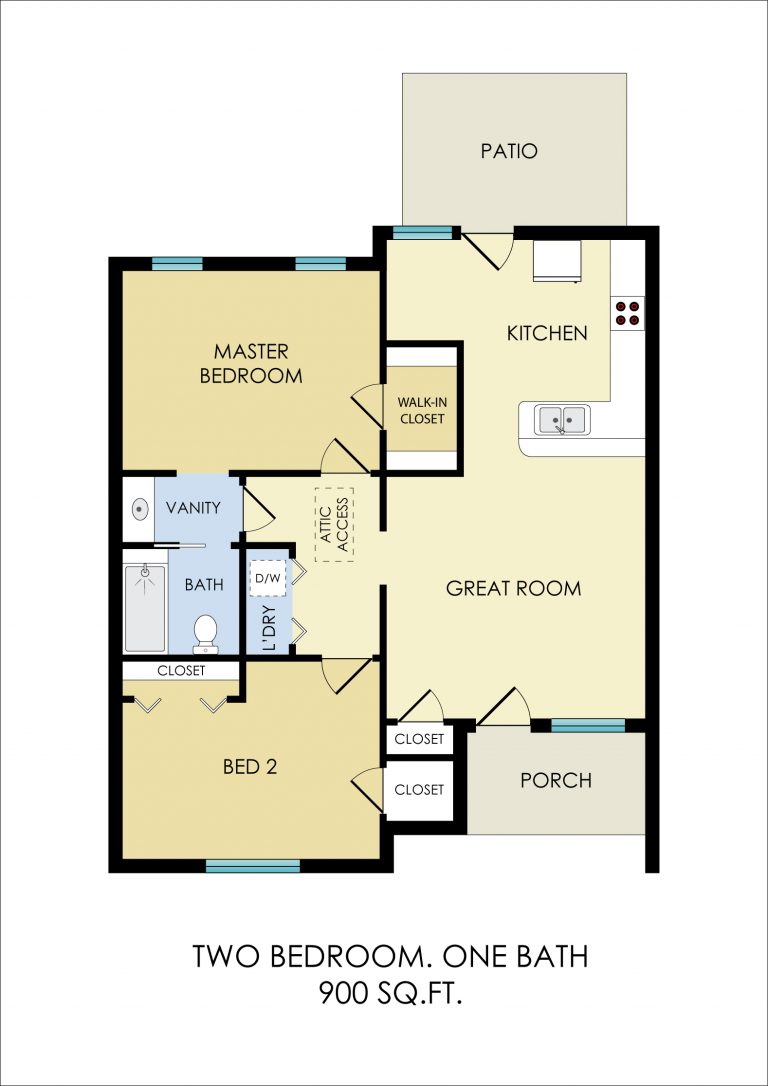 The Retreat – Two Bedroom Floor Plan – 900 SQ.FT.
