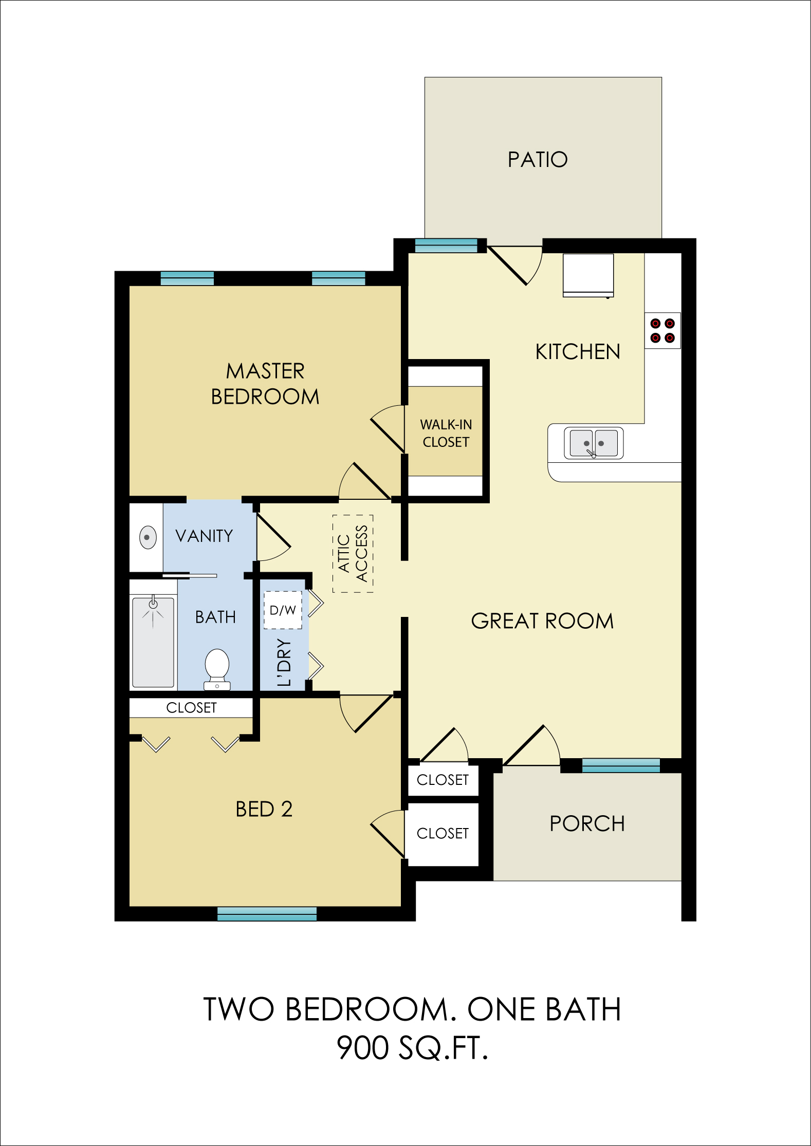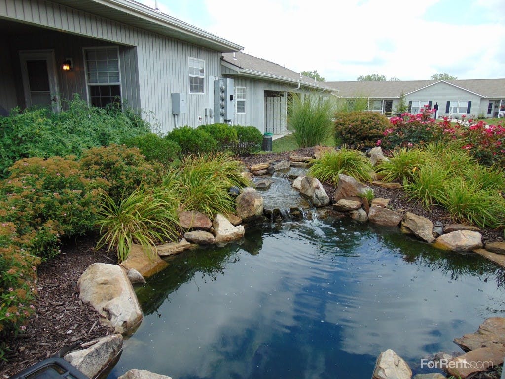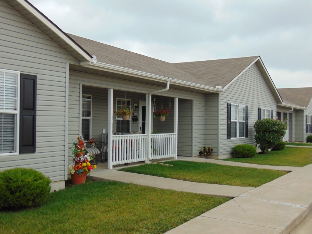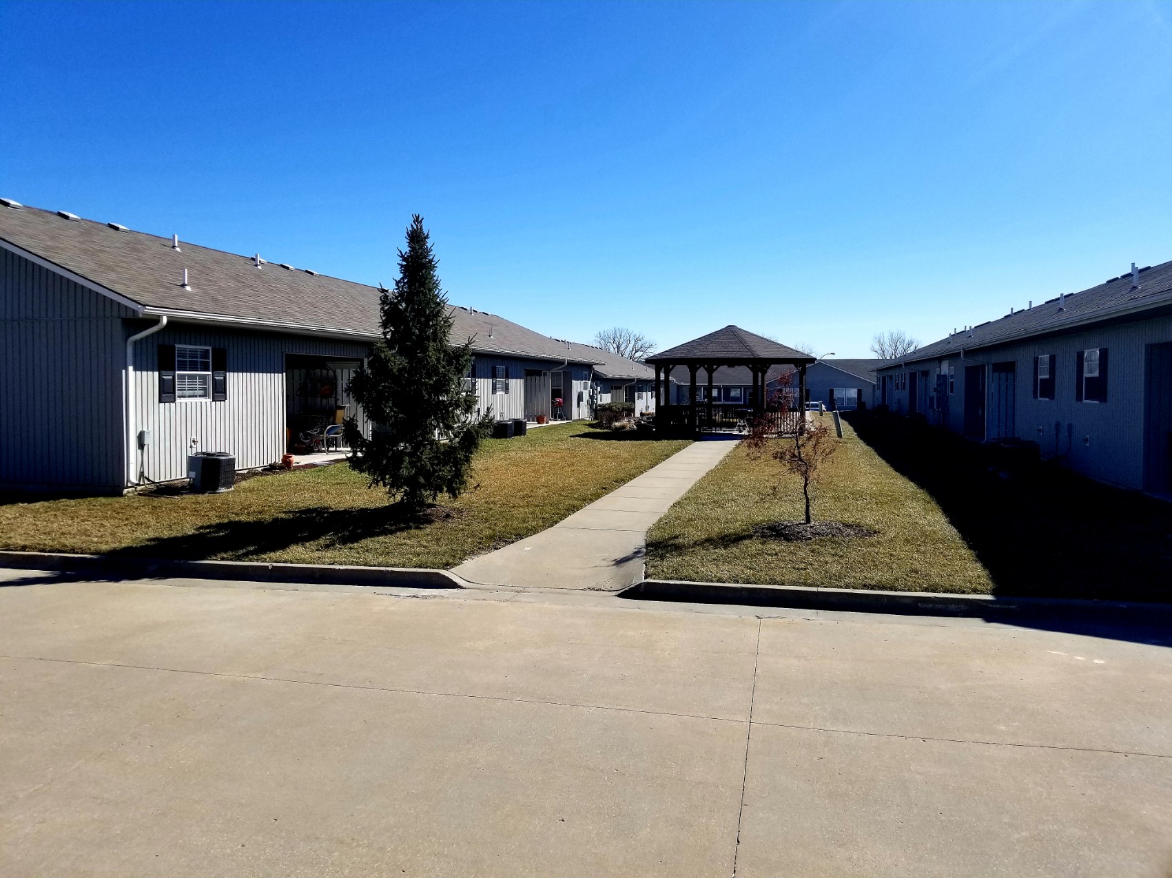 The one-bedroom / one-bath units are 740 square feet, and the two-bedroom / one-bath units are 900 square feet. Amenities include all one level units, spacious front porch with railing and back patios, handicap accessible, vinyl flooring, wide doors throughout, oversize closets, well-equipped kitchens, built-in microwaves*, washer and dryer connections, mail delivered to front door, curbside valet trash pick up, easy access to walk-in shower, residents park in front of there villa. Community amenities include on-site manager, a beautiful clubhouse, game room, gazebo with decorative waterfall pond and outdoor kitchen, and organized resident activities, lawn care and snow removal,